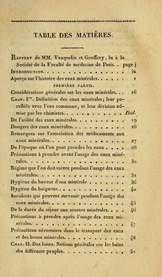 Manuel des eaux minérales de la France, a l'usage des médecins, et des maladies qui les fréquentent : contenant l'exposé des precautions qu'on doit prendre avant, pendant et après l'usage des eaux minérales; la topographie, le tableau des sources; les propriétés physiques, chimiques, médicales, et la mode d'administration des eaux; la manière d'en composer d'artificielles; une notice bibliographique; la description de sources de Spa, d'Aix-la-Chapelle, d'Aix en Savoie, de Louesche et de Saint-Gervais; précédé du rapport de la Faculté de Médicine de Paris / par Ph. Patissier.