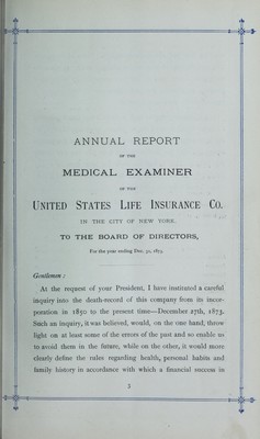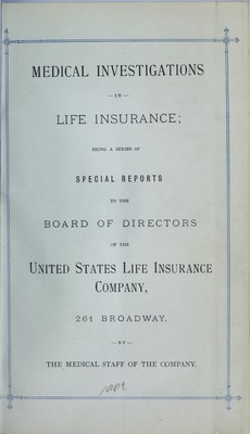 Medical investigations in life insurance : being a series of special reports to the board of directors of the United States Life Insurance Company ... / by the medical staff of the company.