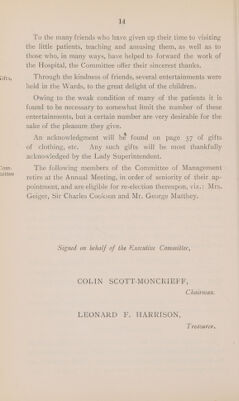 Credit: Annual report : 1904-1905 / Cheyne Hospital for Children. Source: Wellcome Collection.