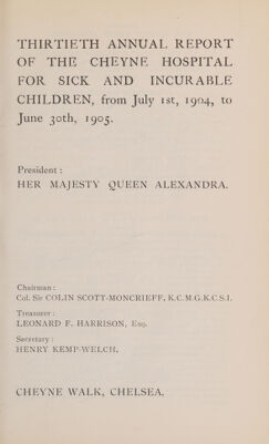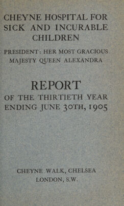 Credit: Annual report : 1904-1905 / Cheyne Hospital for Children. Source: Wellcome Collection.