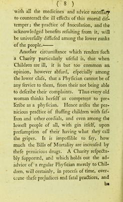 Plan of the Charity for Inoculation, and General Dispensary, for administering advice and medicines to the infant poor : at the Dispensary, (no. 2,) Wardour-Street, Soho, or their own habitations.