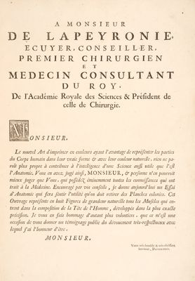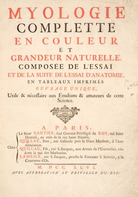 Myologie complette en couleur et grandeur naturelle, composée de l'Essai et de la Suite de l'Essai d'anatomie, en tableux imprimés [d'après les parties disséquées et préparées / par M. Duverney.