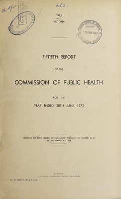Report of the Commission of Public Health to the Minister of Public Health / Department of Public Health, Victoria.