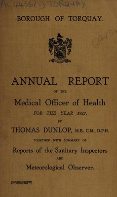 Credit: [Report 1927] / Medical Officer of Health, Torquay Borough. Source: Wellcome Collection.