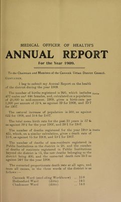 Credit: [Report 1909] / Medical Officer of Health, Cannock U.D.C. Source: Wellcome Collection.