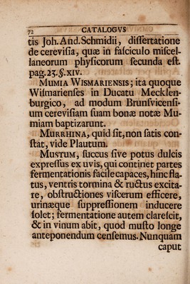 Catalogus exhibens appellationes et denominationes omnium potus generum : quae olim in usu fuerunt et adhuc sunt per totum terrarum orbem, quotquot adhuc reperire potuit / autor Franc. Ernest. Brückmann.