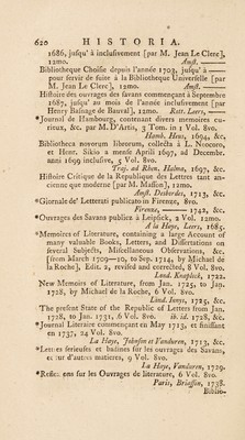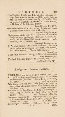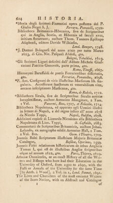 ![*Jftoria degli fcrittorLFiorentini opera poftuma dei P« Giulio Negri S. J. Ferrara, Po?natelli, 1722® Bibliotheca Britannico-Hibernica, five de Scriptoribus qui in Anglia, Scotia, et Hibernia ad faeculi xvn, initium floruerunt; audtore Thom. Tannero Epifcopo Afaphenfi, editore Davide Wilkinfio, Lond. Bowyer, 1748® *J. Dottori Bolognefi dal anno 1000 per tutto Marzo 1623, di Gio. Nic. Pafquali Alidofi, 410. Bologni, Tebaldini, 1623» *Gli Scrittori Liguri defcritti dall’Abbate Michele GiuL tiniani Patritio Genovefe, parte prima, 4to. Roma, Tinajfi^ 1667. Hieronymi Baruffaldi de poetis Ferrarienfibus diflertatio, 4to. Ferraria?, Pomatellus, 1698* *P. Ant. Corfignani de viris illuftribus Marforum lib. fin- gularis. Acceflerunt fandtorum et venerabilium vitee,, necnon infcriptiones Marficanae, 4to. Roma, de Rubeis, 1712. ■^Bibliotheca Sicula, five de Scriptoribus Siculis notitiae locupletiflimae, audtore Antonino Mongitore, 2 Tom. I Vol. Panormi, Buay 1707, et Feli cella ^ 1714, Bibliotheca Napoletana, ed apparato agli Uomini illuftri in lettere di Napoli, e dei regno infino alP anno 1678 da Nicolo Toppi, Napoli, Bulifon, 1678. Addizioni copiofe di Lionardo Nicodemo alia Bibliotheca Napoletana di Lion. Toppi, ib. Cafaldo^ 1683. Commentarii de Scriptoribus Britannicis, audfore Johan. Lelando, ex autographo edidit Antonius Hali, 2 Tom. ♦ I Vol. 8vo. Oxon. e Theatro, 1709. Joannis Balei Scriptorum illuftrium Majoris Britannia? Catalogus, Bafilece, Oporinus, 1559. Joannis Pitfei relationum hiftoricarum de rebus Anglicis Tomus I, qui eft de illuftribus Angliae fcriptoribus ufque ad annum 1612, 410. Paris, Thierry, 1619. Athenae Oxonienfes, or an exadf Hiftory of all the Wri- ters and Bifhops who have had their Education in the Univerfity of Oxford, from 1500 to 1690, with the Fafti or Annals of the Univerfity for the fame Time [by Anth. a W0od], 2 Vol. in i, Lond. Bennet, 1691. The I Aves and Characters of the moft eminent Writers of the Scots Nation, with an Abftracl and Catalogue J of](https://iiif.wellcomecollection.org/image/b30513832_0648.jp2/full/800%2C/0/default.jpg)