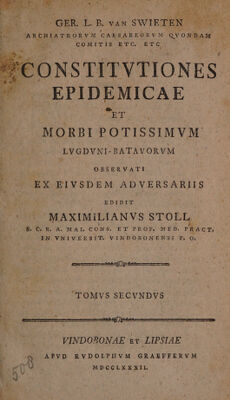 Constitutiones epidemicae et morbi potissimum Lugduni-Batavorum observati / ex eiusdem adversariis edidit Maximilianus Stoll.