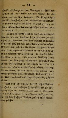 ![bic in unmittelbarer Sftnfjc oon Sftcnfdjen gercinigot wer* ben müfjen, cßcnfaffö einer weit größeren Quantität be§ @<|)ii£mittcf§ auSgefefjt mcrbeit Finnen, af§ 6ei; ber Reinigung mit ben bisherigen anbern Sbunff* ober gas- förmigen SÄittefn. • * §. 10. ©iefer llnfcrf^teb mürbe fc'df> cvft bann im I)öcfj= ften ©rabc geftenb machen, unb er mürbe ber .Slüfjfcn* faure unftreitig unter affen anbern ©iittefn bie ^afmc öuficfjcrn, menn, mie na cf) beS 23erfaj]erS ©rünben (§. 3.) feicf)t ju tjoffen fiefjt, btcfeS ©aS in jebem entfpre- ^enben ^chnftniffe, ganj ober boef) gröf?tenti)eifs frei; oon atmofpf;arifcf)er ßuft eingefc^foffen, ober auefj in einem größeren ßoeafe bis auf eine miffFüf;rficf)e $ot)c, eben fo unomnengt angefammeft merben Fönnte, unb wnn fofgficf) eine 3'fofirung alter ©egenffanbe von ber atmofpf)ürifcf)cn ßuft auch im ©rofjen mivFficf) auS= füf;rbar märe*). ) Ser SSerfaffer ertaubt lief) hier nur bie uimorgreiffirfje sßc, merfung: 1) bafc eß sur 2lnfamm!uiig beß mügfidift un- termengten ©afeß in einem S3cfmttnij]e beqüemcr unb SnjecfmäfHger fe9n türfte, bie (Sntmicfcfung auger&afö beß-- lelOen, mitteljl einer einfachen Oietorte roräune&men, fo bau baß ©aß im gesoffenen Stau me ror ben». Uebcrgange »n ben 9teinigungß--2Jpparat erft bunt) fafteß SBctjfer geführt nmrbc; 2) bafj ein höherer ©rab m\ geudjtigfeit ber](https://iiif.wellcomecollection.org/image/b28521237_0027.jp2/full/800%2C/0/default.jpg)