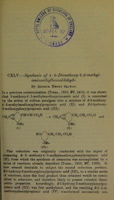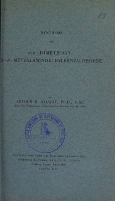 Credit: Synthesis of 4:6-dimethoxy-2-[beta]-methylaminoethylbenzaldehyd e / by Arthur H. Salway. Source: Wellcome Collection.