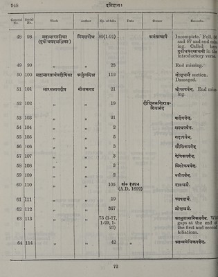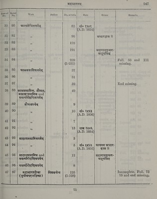 Credit: Catalogue of the Anup Sanskrit Library / prepared by C. Kunhan Raja and K. Madhava Krishna Sarma. Source: Wellcome Collection.