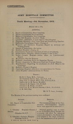 Index to volume 1 of the minutes and reports of the Army Hospitals Committee : meetings 1 to 35, minutes 1 to 345 21st May 1903 to 6th October 1904.