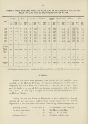 Credit: [Report of the Medical Officer of Health for Holborn, Metropolitan Borough]. Source: Wellcome Collection.