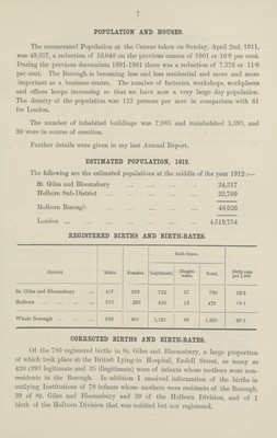 [Report of the Medical Officer of Health for Holborn, Metropolitan Borough].