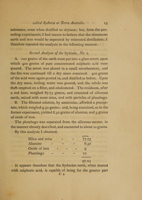 Credit: An analysis of the earthy substance from New South Wales called Sydneia or Terra Australis / [Charles Hatchett]. Source: Wellcome Collection.