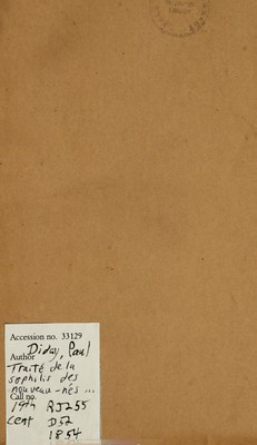 Traité de la syphilis des nouveau-nés : et des enfants à la mamelle / par P. Diday ; ouvrage qui a remporté le prix, médaille d'or, au concours de Bordeaux ouvert par la Société de médecine de cette ville.