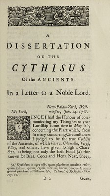 A dissertation on the true Cythisus of the ancients ... to which is added, and account of the ... Lucerne ... also a catalogue of ... seeds / [Stephen Switzer].