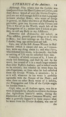 Credit: A dissertation on the true Cythisus of the ancients ... to which is added, and account of the ... Lucerne ... also a catalogue of ... seeds / [Stephen Switzer]. Source: Wellcome Collection.