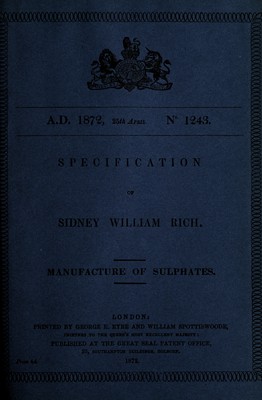 Credit: Specification of Sidney William : manufacture of sulphates. Source: Wellcome Collection.
