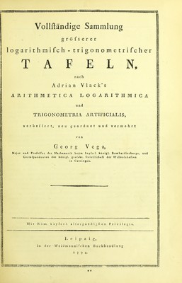 Thesaurus logarithmorum completus. : Vollständige Sammlung grösserer logarithmisch-trigonometrischer Tafeln.