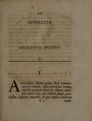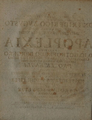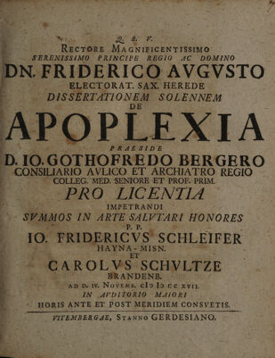 Dissertationem solennem de apoplexia / ... P. p. Jo. Fridericus Schleifer ... et Carolus Schultze.