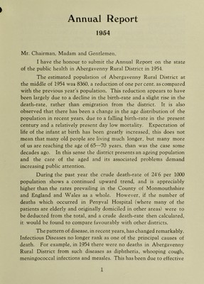 Credit: [Report 1954] / Medical Officer of Health, Abergavenny R.D.C. Source: Wellcome Collection.