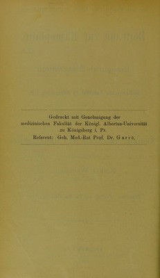Beiträge zur Hämophilie : Inaugural-Dissertation der medizinischen Fakultät zu Königsberg i. Pr. zur Erlangung der Doctorwürde in der Medizin, Chirurgie und Geburtshilfe / vorgelegt von Rudolf Weidmann.