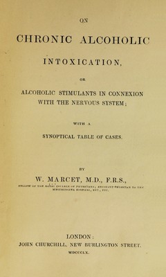 On chronic alcoholic intoxication, or Alcoholic stimulants in connexion with the nervous system; with a synoptical table of cases / By W. Marcet.