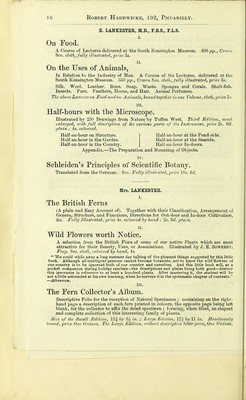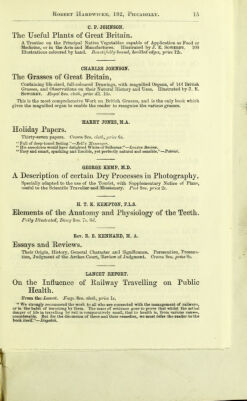 ![III. The Treatment of Lupus. 8vo. seired, price Is. IV. TliG Stream of Life on Our Globe. Its Archives, Traditions, and Laws, as revealed by Modern Discoveries in Geology .ond Palaeontology. A Sketch in Untechnical Language of the Beginning and Growth of Life, and the Physiological Laws which govern its Progress and Operations. Second Ediiion, Crown 8i'o. cloth, 624 pp., price 6s. Contents. The Beginning of Life. England, long, long Ago. The First Dwellers on Earth. The First Builders. The First Wanderers. The First Colonists of Sacred History. The First Language. The First Alphabet. The Battle of Life. Glances at the Laws of Life. Life in the Blood. Life in the Nerves. Life of a Giant. Life of Men of Genius. Influence of Smoking on Life and Race. Life in the Stars and Planets ; or. Coloured Stars and their Inhabitants, &c. &c. FRANCIS MORTON, C.E. A Manual of Geography. Being a Description of the Natural Features, Climate, and Productions of the various regions of the Earth. Limp cloth, Is.; Bound in Leather, with Coloured Maps, \s. 6d, ; in paper, witliout Maps, 6d. T. W. NUNN, F.R.C.S. I. The Ward Manual; Or, Index of Surgical Diseases and Injuries, for the use of Students. Cloth, 'price 3s. II. Notes on Personal Hygiene, No. 1. 8i>o. sewed, price Qd. Oken's Elements of Physio-Philosophy. Translated from the German by Alfred Tulk, Esq. Price 10s. 6d. [Ray Society.] H. CHOLMONDELEY-PENNELL. The Book of the Pike. A Practical Treatise on the various methods of Jack-Fishing, with an analysis of the Tackle employed, the History of the Pish, &c. Also a Chapter on Spinning for Trout in Lakes and Rivers. Crown 8ro., illustrated, price as. REUBEN PHILLIPS, On Atmospheric Electricity. S'oo. sewed, price 2s. <5d.](https://iiif.wellcomecollection.org/image/b21951512_0336.jp2/full/800%2C/0/default.jpg)