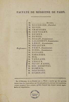 Credit: Essai sur le sarcocèle; présenté et soutenu à la Faculté de Médecine de Paris / [F.A. Ferrand]. Source: Wellcome Collection.