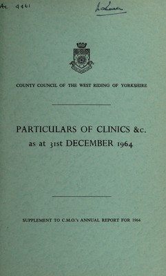 Credit: Particulars of Clinics &c. as at 31st December 1964 / West Riding of Yorkshire County Council. Source: Wellcome Collection.