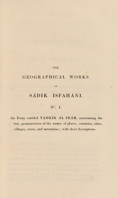 The geographical works of Sádik Isfaháni / Translated by J.C. from original Persian MSS. in the collection of Sir William Ouseley, the editor.