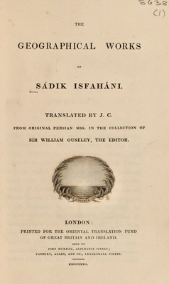 The geographical works of Sádik Isfaháni / Translated by J.C. from original Persian MSS. in the collection of Sir William Ouseley, the editor.