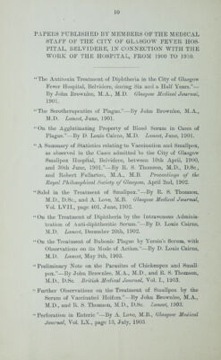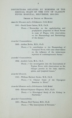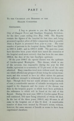 Report of the city of Glasgow fever and smallpox hospitals, Belvidere, for the three years ending 31st May, 1909 / by John Brownlee.