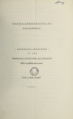 Credit: [Report 1960] / Medical Officer of Health, Bakewell R.D.C. Source: Wellcome Collection.