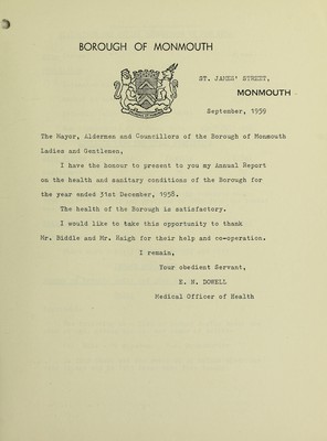 Credit: [Report 1958] / Medical Officer of Health, Monmouth Borough. Source: Wellcome Collection.