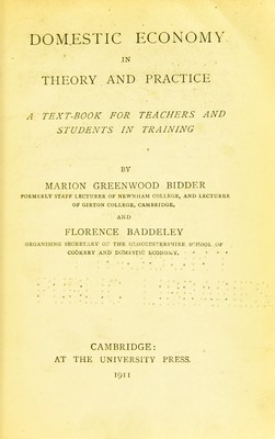 Domestic economy in theory and practice : a text-book for teachers and students in training / by Marion Greenwood Bidder and Florence Baddeley.
