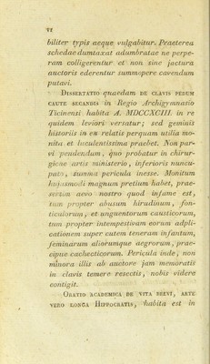 Credit: Joannis Petri Frank Opuscula posthuma : videlicet: 1. Dissertatio de clavis pedum caute secandis, 2. Oratio academica de vita brevi arte vero longa Hippocratis, 3. Interpretationum clinicarum fragmentum, 4. Epitomes de curandis hominum morbis pars / ab Josepho filio, nunc primum edita. Source: Wellcome Collection.