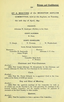 • Menston Asylum. Committee.