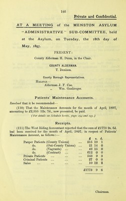 Credit: Minutes of the Menston Asylum Committee : April 20th, 1897, ... May 18th, 1897; "Administrative" Sub-Committee, April 20th, 1897, ... May 18th, 1897. Source: Wellcome Collection.