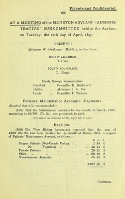 Credit: Minutes of the Menston Asylum Committee : April 20th, 1897, ... May 18th, 1897; "Administrative" Sub-Committee, April 20th, 1897, ... May 18th, 1897. Source: Wellcome Collection.
