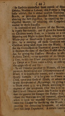 Credit: Medela chymica: or an account of the vertues and uses of a select number of chymical medicines adapted to the cure of the most chronick and rebellious diseases. To which is subjoyned a brief history of cures effected by them : As also, an essay upon the Acetum acerrimum philosophorum, or vinegar of antimony. With some experiments made therewith / by Christopher Packe. Source: Wellcome Collection.