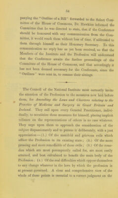 Report of the Council of the National Institute of General Practitioners in Medicine, Surgery and Midwifery, on the present state of the medical reform question : containing the 'Principles' of medical reform promulgated by the conference of delegates at the Royal College of Physicians, London ; the draft of the proposed charter to the general practitioners in medicine, surgery, & midwifery ; the 'outlines of a Bill' furnished to the Parliamentary Committee by the conference, with the concurrence of the universities and medical corporations of Scotland and Ireland ; and other public documents : with remarks on the objections which have been recently urged against the proposed measures : August 9th, 1848.