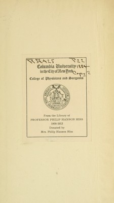 Provider: This material has been provided by the Augustus C. Long Health Sciences Library at Columbia University and Columbia University Libraries/Information Services, through the Medical Heritage Library. The original may be consulted at the the Augustus C. Long Health Sciences Library at Columbia University and Columbia University.