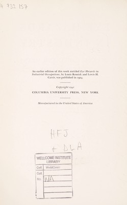 Credit: Eye hazards in industry : extent, cause, and means of prevention / by Louis Resnick. Source: Wellcome Collection.