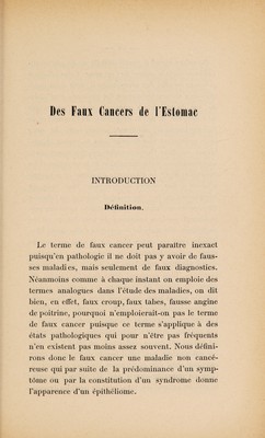 Des faux cancers de l'estomac ... / par Marcel Bruguière.