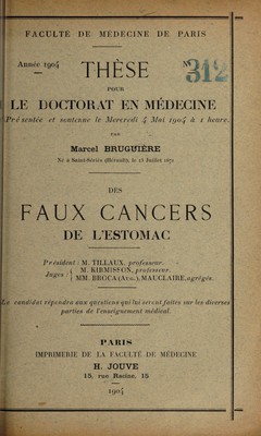 Des faux cancers de l'estomac ... / par Marcel Bruguière.