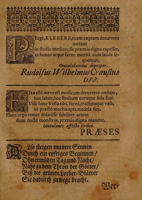 Georgii Wolffgangi Wedelii, Med. Doctoris, Consiliarii ... Pharmaciae acroamaticae disputatio VI. De fixatione, reverberatione, instrumentis pharmaceuticis in genere, furnis, & vasis, eodem praeside / publicae disquisitioni subjecta à Johanne Georgio Klebero, ... ad diem Novembris. M DC LXXXV.