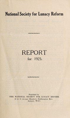 Credit: Report for 1925 / National Society for Lunacy Reform. Source: Wellcome Collection.