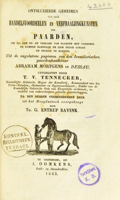 Ontsluijerde geheimen van alle handelsvoordeelen en verfraaijingskunsten der paarden, om bij den in- en verkoop van paarden met voordeel te kunnen handelen en zich tegen schade en bedrog te hoeden ... / Uitgegeven door T.V. Tennecker ... Na den derden ... druk uit het Hoogduitsch overgebragt door Th. G. Entrup Bavink.